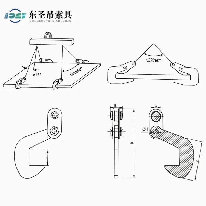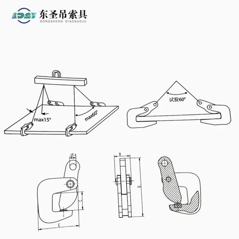 >以单只试验为额定载荷,吊装作业时单只或者两只配套使用。只能同时吊装一块钢板,严禁层叠吊装。
